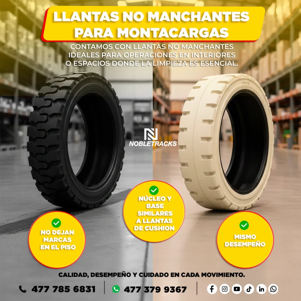 No existe una llanta universal para todos los montacargas. La mejor elección depende de tu operación, superficie y tipo de industria.